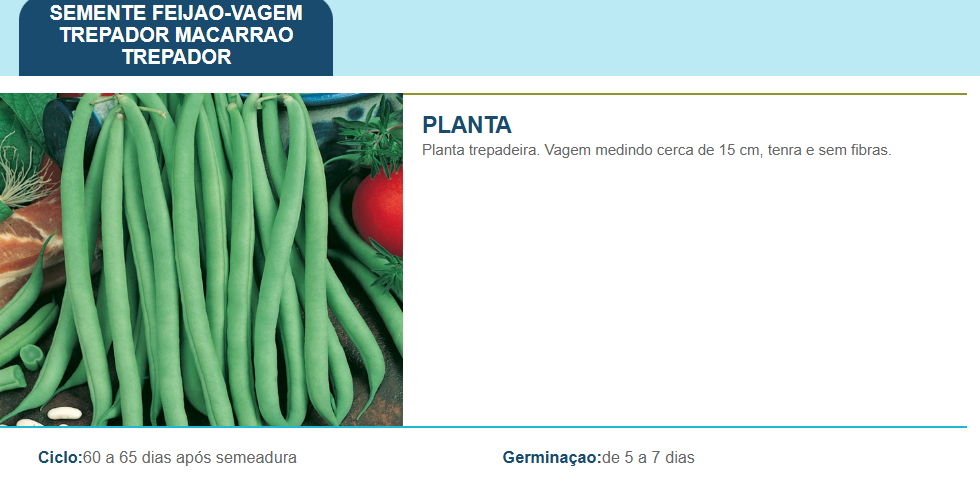 SEMENTES FEIJÃO-VAGEM MACARRÃO TREPADOR - TOPSEED