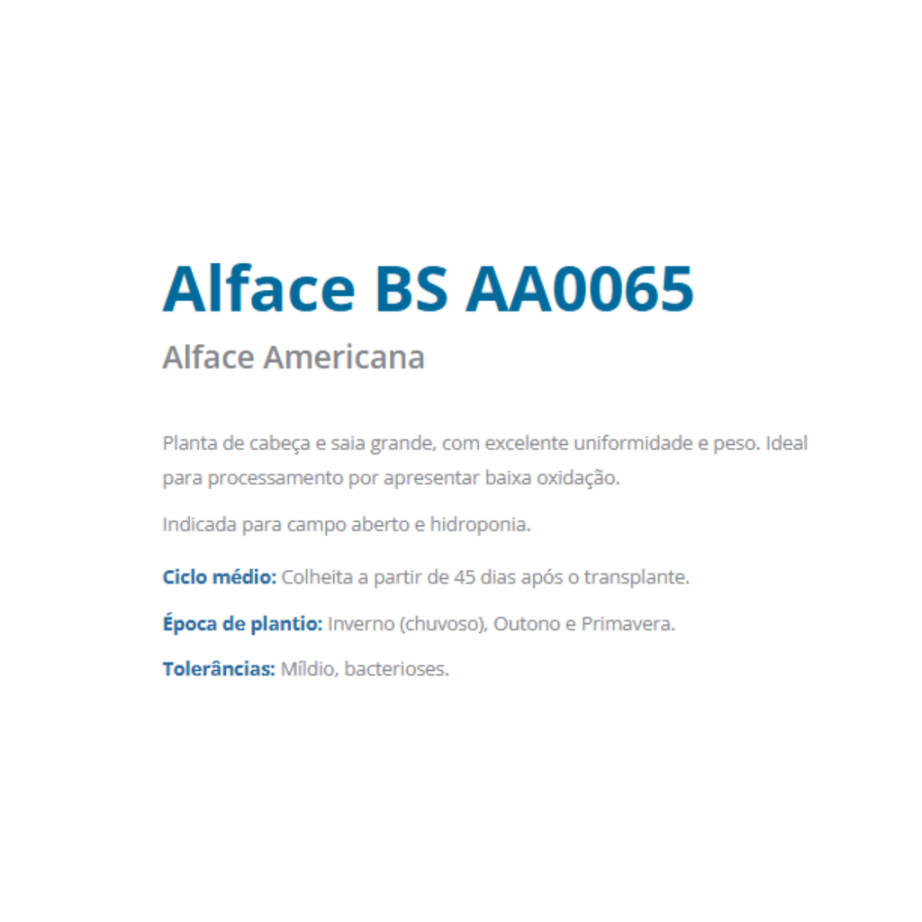 ALFACE AMERICANA BS AA 0065 BLUESEEDS - 7500 SEMENTES